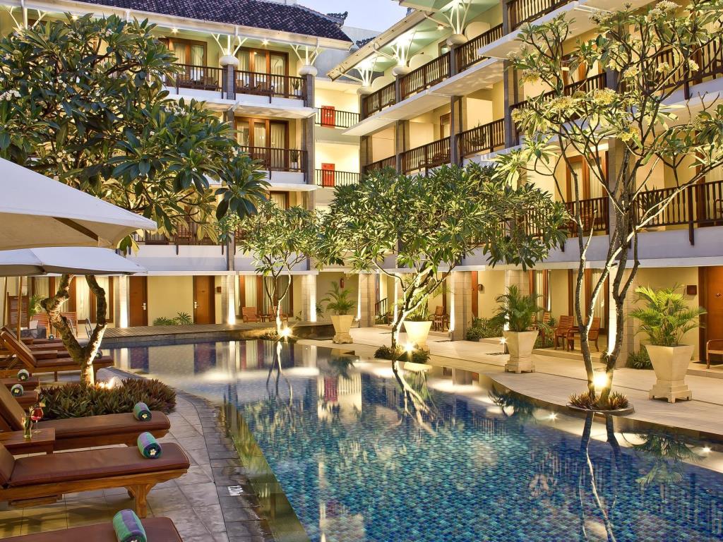 يقع هذا الفندق على بُعد 6 دقائق سيرًا من الشاطئ في جنوب كوتا بيتش، وعلى مسافة 10 دقائق بالسيارة من مطار بالي الدولي. ويوفر الفندق حمامات سباحة خارجية ذات شكل حر و6 مطاعم . ويمكن للعائلات بصحبة أطفال الاستفادة من ركن الأطفال والملعب. وتتوفر خدمة الواي فاي مجانًا في جميع مناطق الفندق